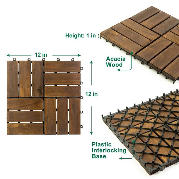 1ft.x 1ft. Interlocking Solid Hardwood Acacia Wood Deck Tile(30-Pack)