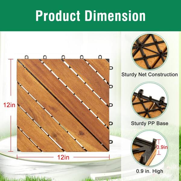 1ft.x 1ft. Interlocking Solid Hardwood Acacia Wood Deck Tile(30-Pack)