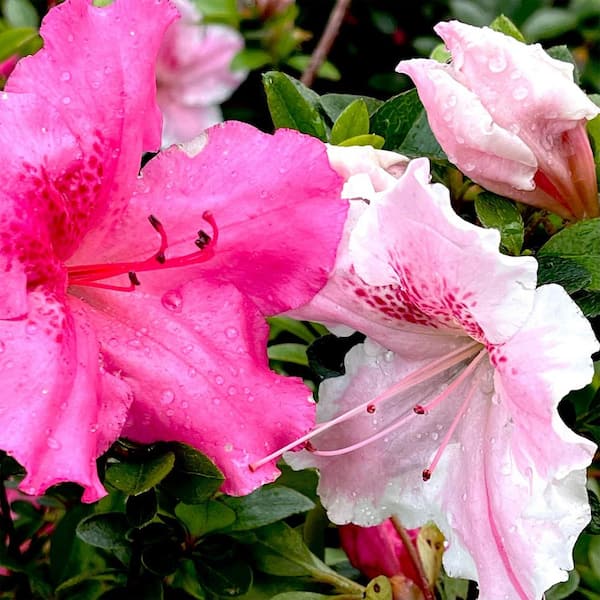 2.25 Gal. Conversation Piece Azalea Shrub with Unique Pink Blooms and Green Foliage
