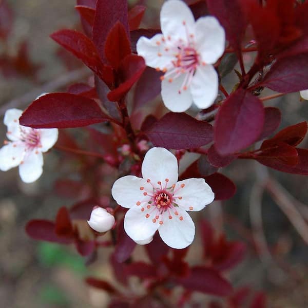 2.25 Gallon Purple Leaf Sand Cherry (Prunus x cistena) Shrub with Pink Flowers 1-Each