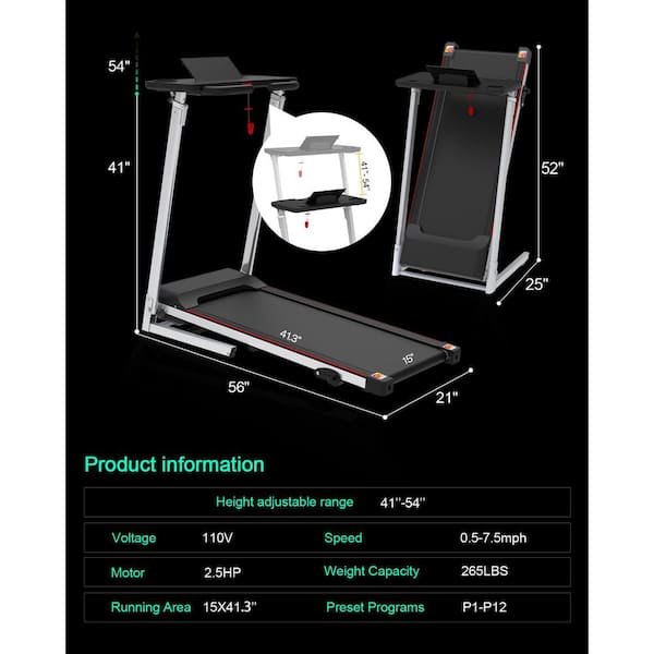 2.5 HP Black Steel Foldable Electric Treadmill with Safety Key, LCD Display, Pad/Phone Holder and 3-Level Inclines