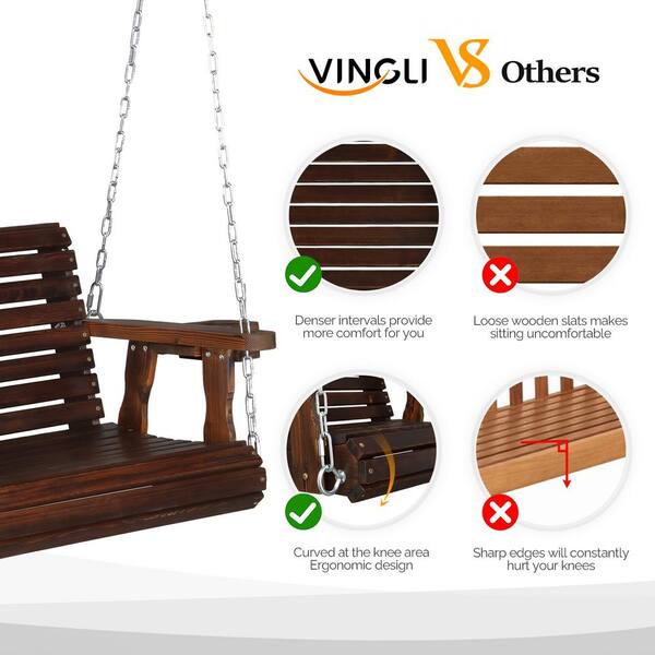 2.5 ft. 1-Person Rustic Pine Wood Patio Porch Swing with Extra Cup Holders, Support 440 lbs. Weather Resistant
