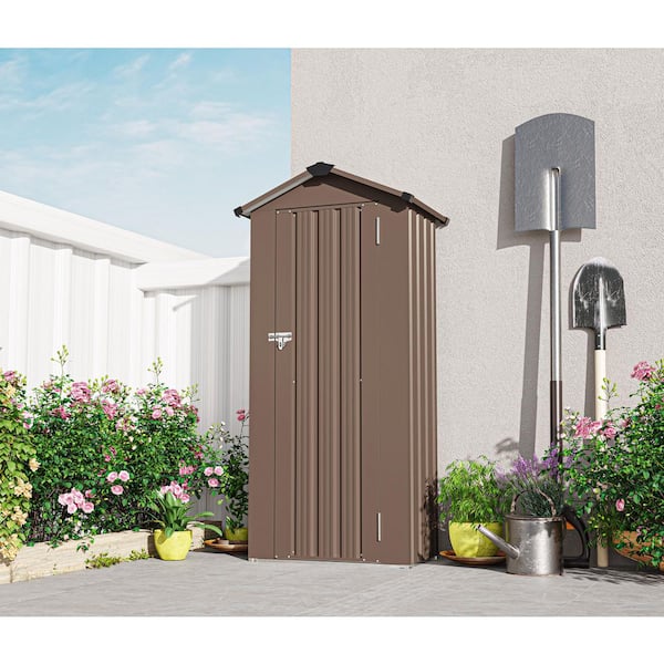 2.5 ft. W x 1.4 ft. D Metal Outdoor Storage Shed, Lockable Garden Tool Sheds,galvanized iron sheet,Brown (3.5 sq. ft.)