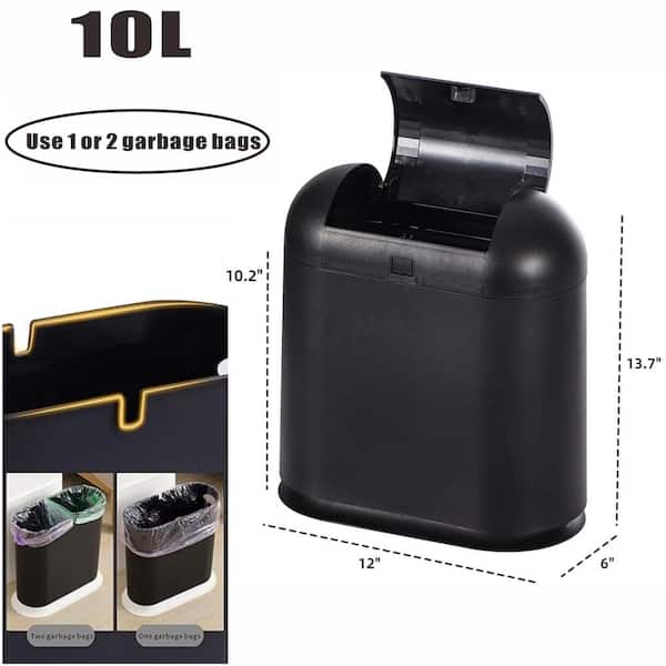 2.6 Gal. Black Plastic Narrow Trash Can with Press Top Lid