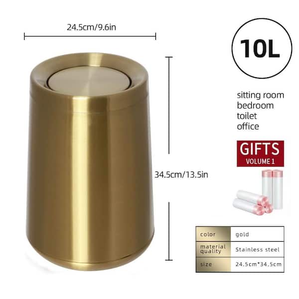 2.6 Gal. Gold Metal Trash Can with Flip Cover