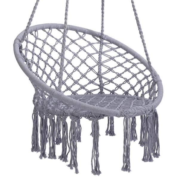 2.6 ft. Portable Hanging Cotton Rope Hammock Chair in Gray
