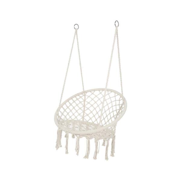 2.6 ft. Portable Tassel Hammock Chair in Beige for Indoor and Outdoor