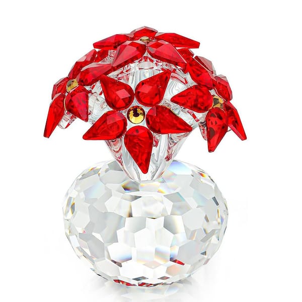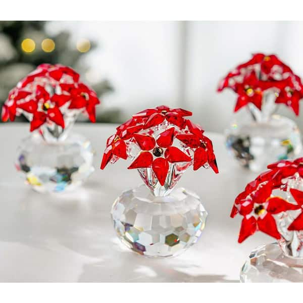 2.8 in. Red Crystal Poinsettia Figurine with Glass Flower Ornament for Christmas Table Decor