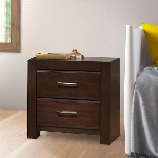 2-Drawer Walnut Wooden Nightstand 23.62 in. L x 16.22 in. W x 23.58 in. H