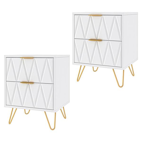 2-Drawer White Simple Geometric Nightstand 14.57 in. D x 16.54 in. W x 21.46 in. H (Set of 2)