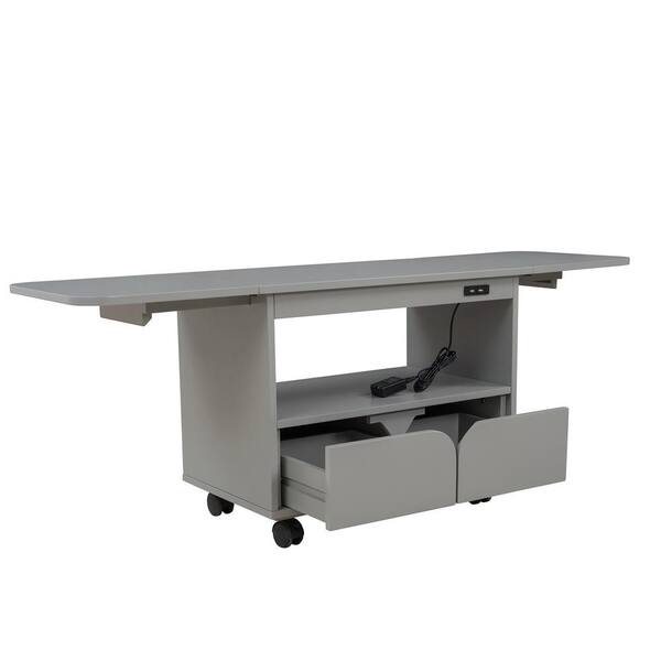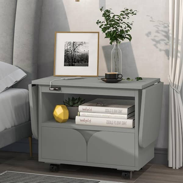 2 Drawers Gray Foldable Bedroom Nightstand 20.90 in. H x 53.90 in. W x 13.40 in. D
