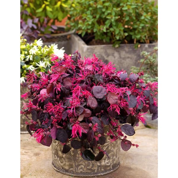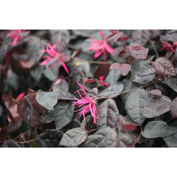 2 Gal. Jazz Hands Bold Loropetalum Flowering Shrub with Dark Purple Black Leaves and Pink Blooms