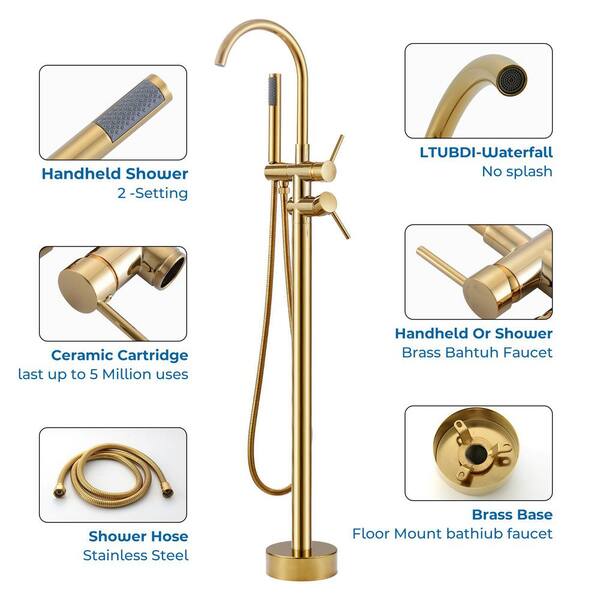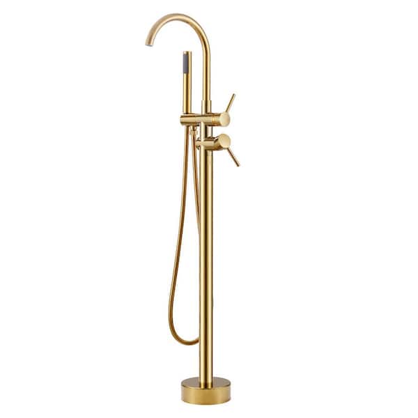 2-Handle Claw Foot Freestanding Tub Faucet with Hand Shower in Brushed Gold