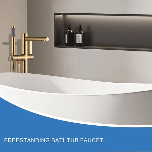 2-Handle Claw Foot Tub Faucet with Hand Shower in Gold