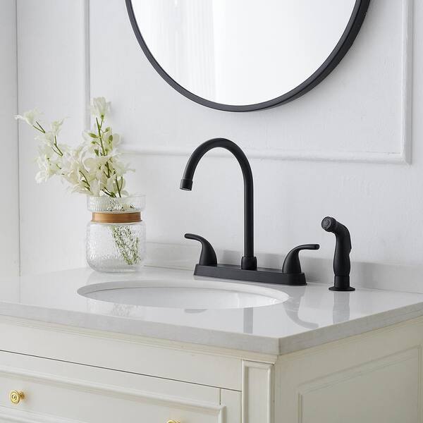 2-Handle Deck-Mount Standard Kitchen Faucet with Pull Out Side Sprayer in Matte Black