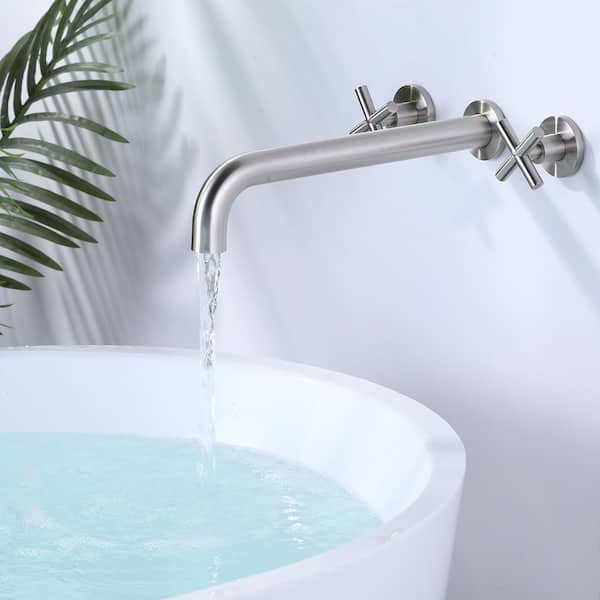 2-Handle Wall-Mount Brass Roman Tub Faucet with Long Spout Reach in Polished Chrome (Valve Included)