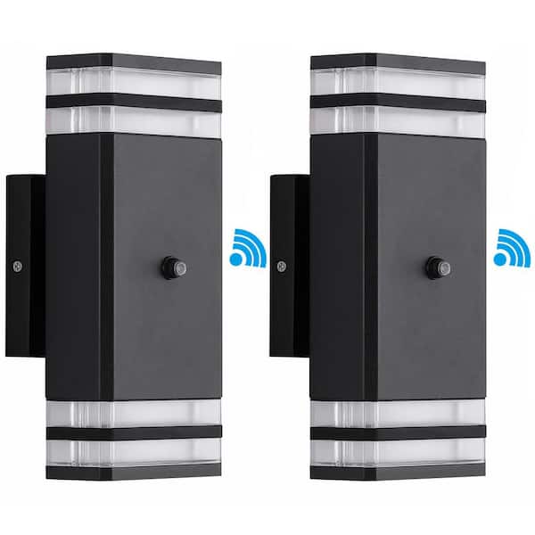 2-Layer Black Dusk to Dawn Outdoor Hardwired Wall Lantern Sconce Exterior Light Fixture with Bulbs Included (2-Pack)