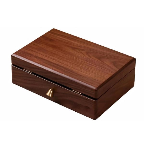 2 Layer Brown Rectangular Wood Jewelry Box with 5-Drawer