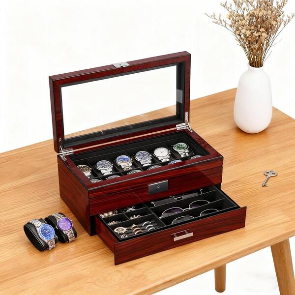 2-Layer Red Rectangular Faux Leather Cufflinks