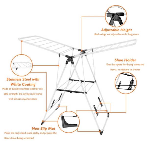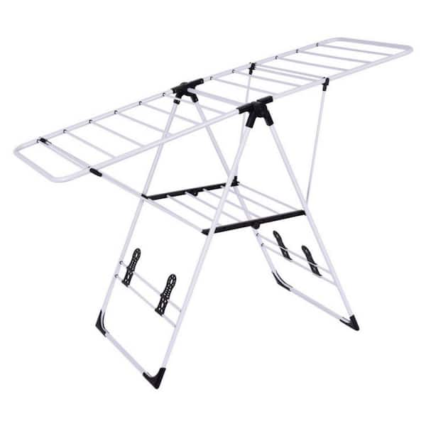 2-Level Portable Laundry Clothes Storage Drying Rack with Height-Adjustable Gullwings