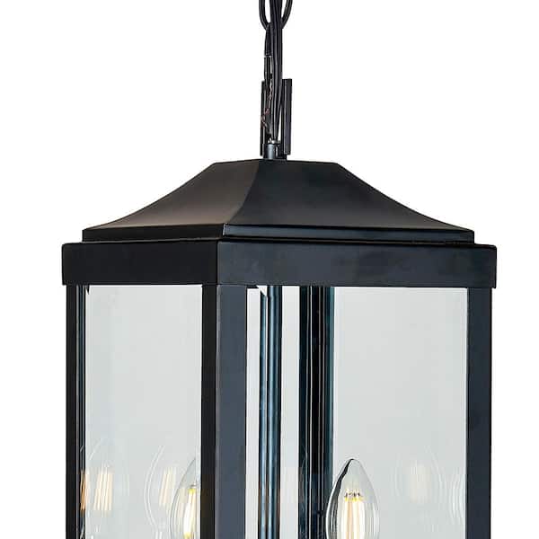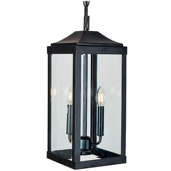 2-Light Matte Black Outdoor Pendant Light with Clear Glass Shade