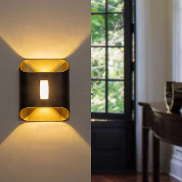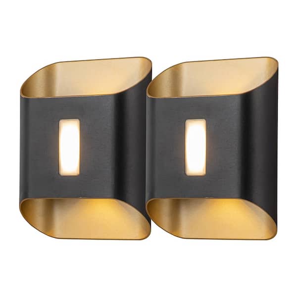 2-Light Outer Black Inner Gold Aluminum LED Outdoor Wall Sconce (2-Pack)