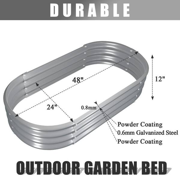 2-Pack 48 x 24 x 12 in. Oval Galvanized Steel Raised Garden Beds for Planting Vegetables, Flowers, Herb, Light Gray