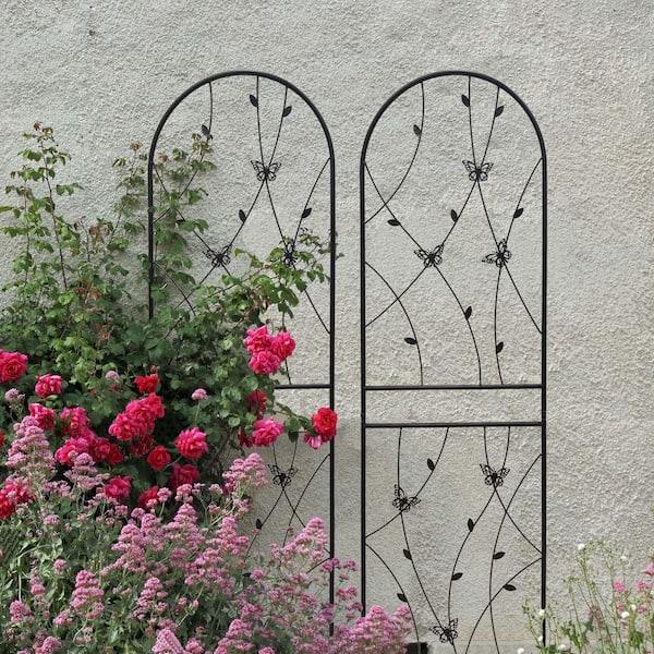 2 Pack 71 in. H Metal Butterfly Deco Garden Trellis, Outdoor Arched Fence Trellis for Climbing Plants, Black