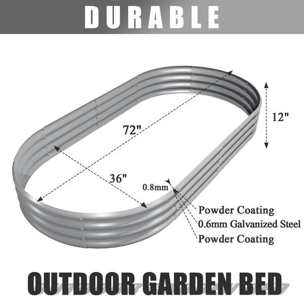 2-Pack 72 x 36 x 12 in. Oval Galvanized Steel Raised Garden Beds for Planting Vegetables, Flowers, Herb, Light Gray