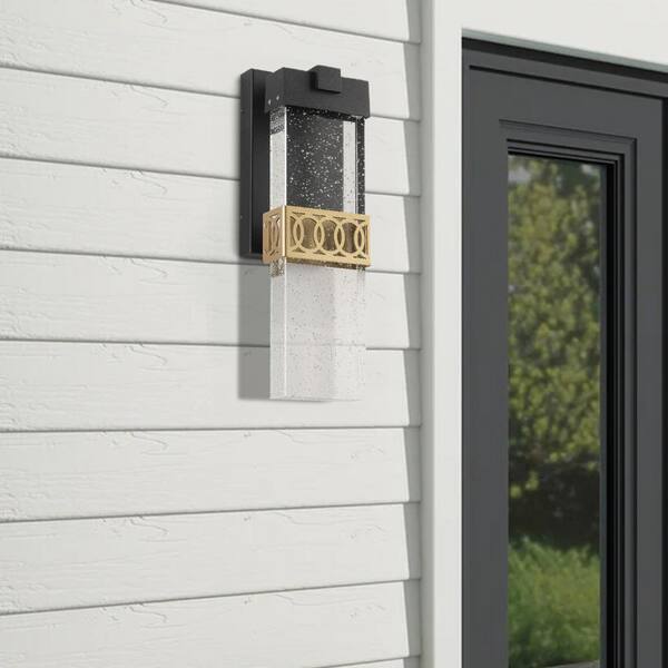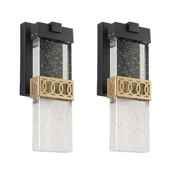 2-Pack Black and Gold not Motion Sensing LED Outdoor Hardwired Wall Lantern Sconce with No Bulbs Included