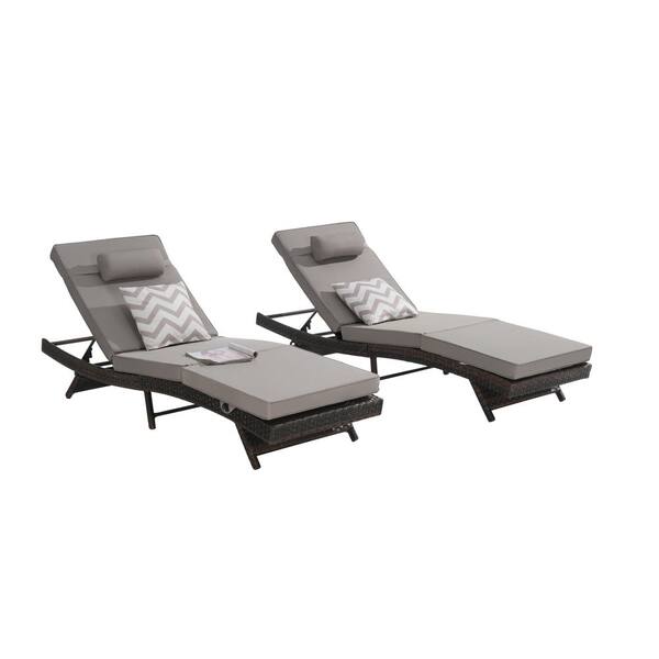 2-Pack Brown Wicker Rattan Patio Outdoor Lounge Reclining Chair with Light Grey Cushions Up to 150°, for Lawn, Poolside