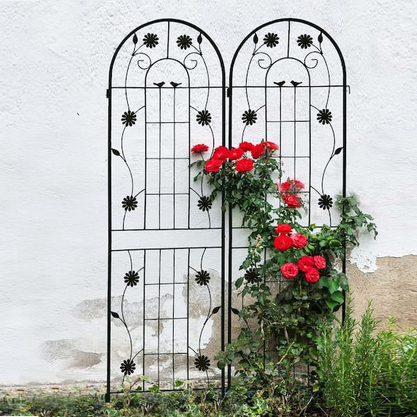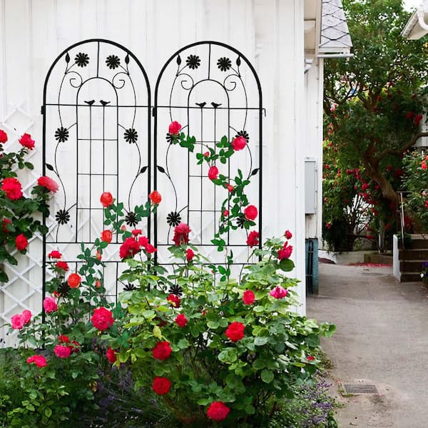 2-Pack Metal Garden Stake High Outdoor Decoration Arched Fence Trellis for Climbing Plants for Patio, Lawn, Yard, Black