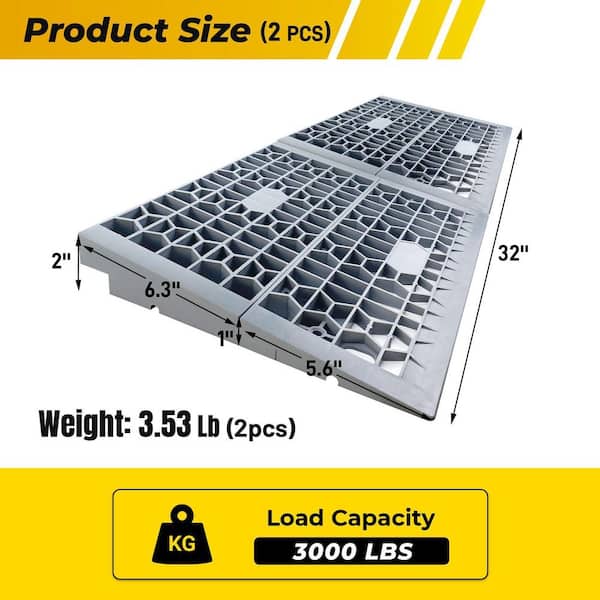 2-Pack Modular Series 2-Inch Rise Wheelchair Ramp Entry Doorway Ramp in Black with Anti-Slip and Cable Channels