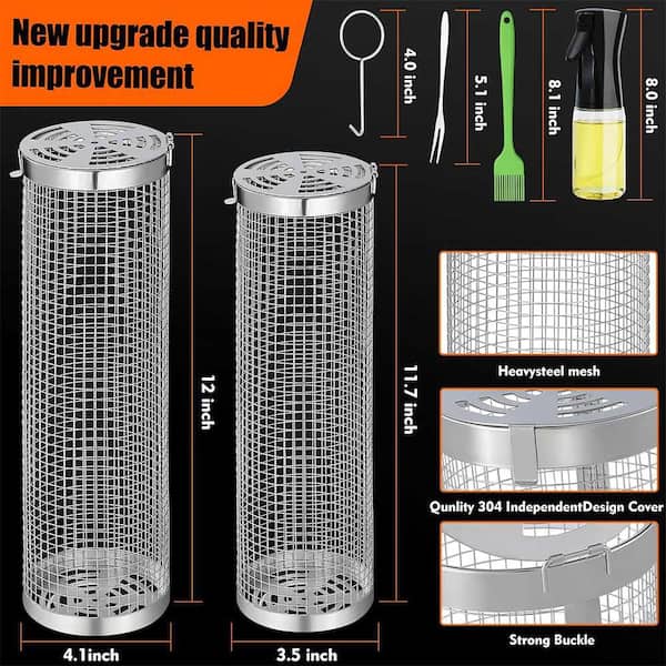 2-Pack Stainless Steel Rolling Grill Baskets with Accessories