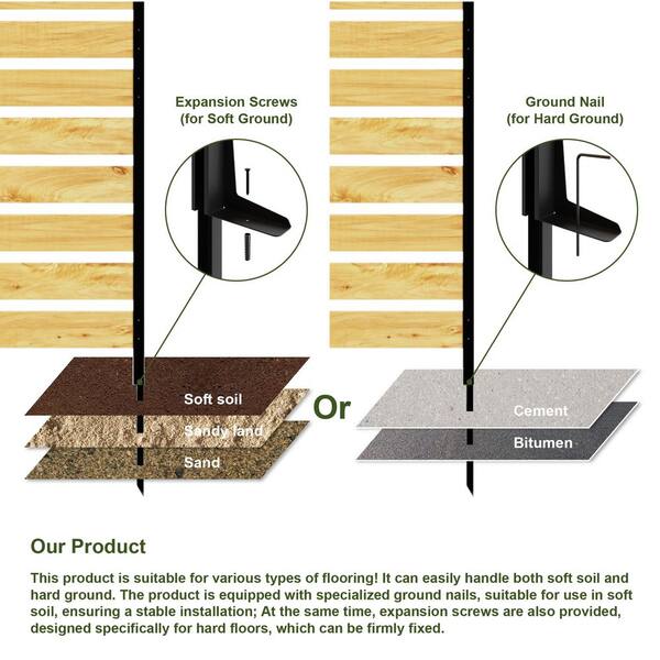 2-Panel 6.43 ft. x 3.6 ft. Black and Natural Outdoor Patio Side Awning Privacy Wood Fence, Privacy Screen, for Garden