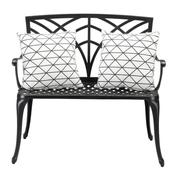 2-Person 38 in. Aluminum Antique Style Outdoor Orchid Back Bench, Rust-Resistant Curved Arms Anti-Slip Rubber Leg, Black