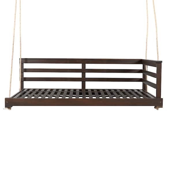 2-Person Brown Wood Porch Swing with 4-Piece 96 in. Hemp Ropes for Backyard