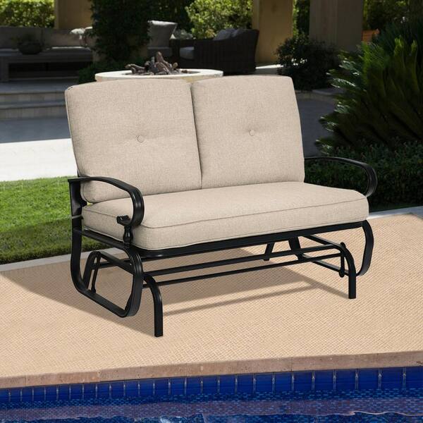 2-Person Metal Outdoor Glider Chair with Beige Cushion