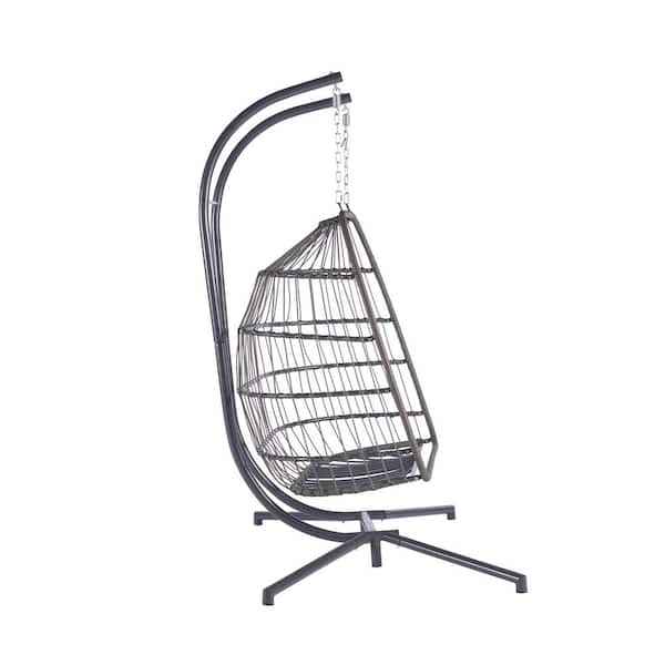 2-Person Wicker Patio Swing Chair Hanging Egg Swing Chair with Red Cushions