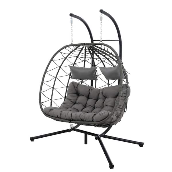 2-Persons Metal Patio Swing Egg Chair with Stand Wicker Hanging Egg Chair Hanging Basket Chair with Stand