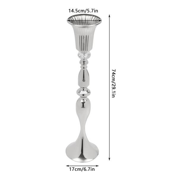 2-Piece 29.1 in. Tall Wedding Centerpieces Silver Metal Tabletop Trumpet Vases with Crystal Bead