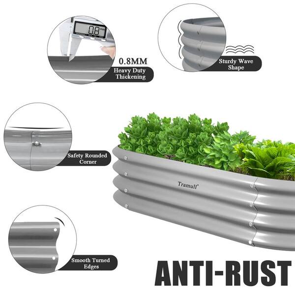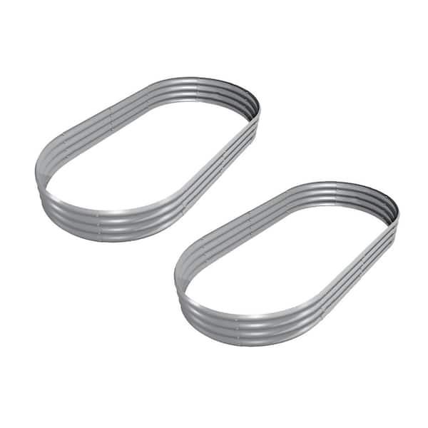 2-Piece 4 x 2 x 1 ft. Oval Galvanized Steel Raised Garden Beds in Light Grey