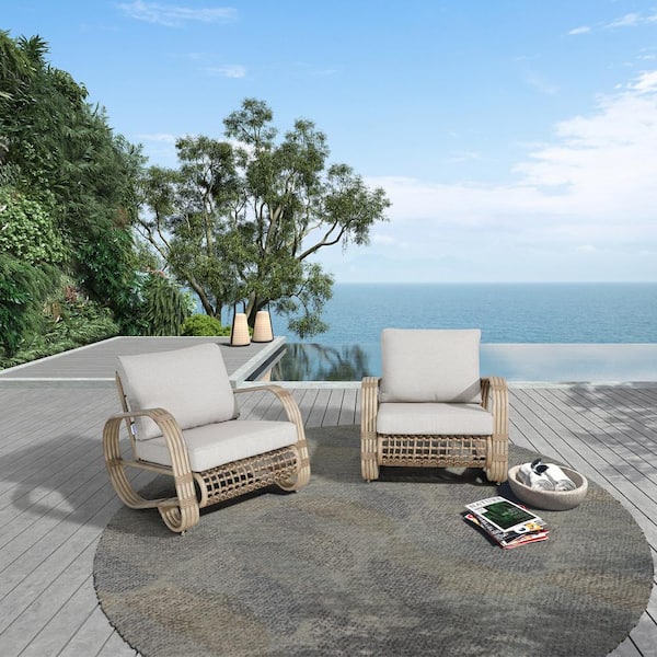 2-Piece Aluminum Patio Conversation Chairs Set with Beige Cushions, Outdoor Lounge Sofa Chairs