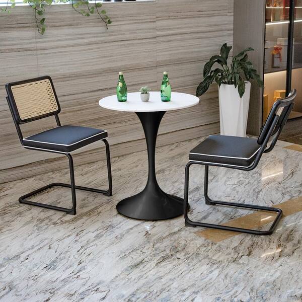 2-Piece Black Steel Outdoor Dining Chair with Black Cushions, High-Density Sponge, Rattan Chair for Dining Room