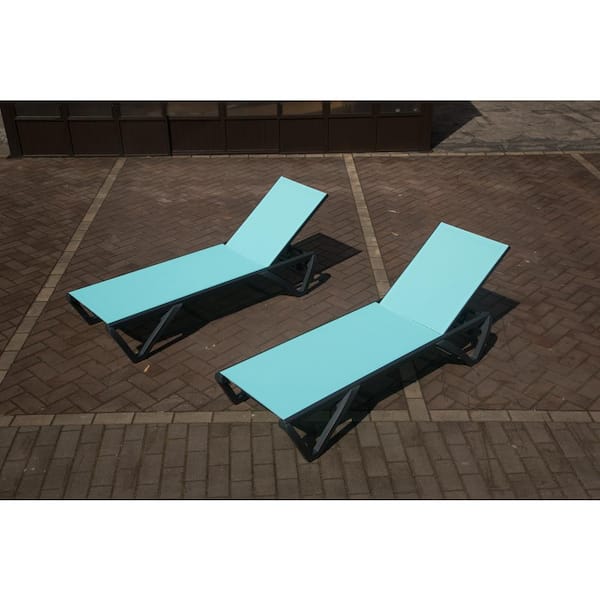 2 Piece Lake Blue Aluminum Outdoor Lounge Chair with 5 Position Adjustable Backrest Wheels All Weather Reclining Chair
