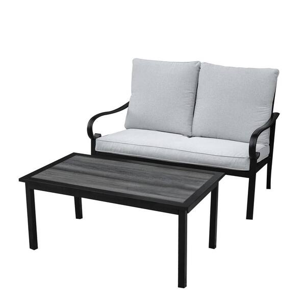 2-Piece Metal Patio Conversation Set Loveseat Sofa with Gray Cushions and Coffee Table