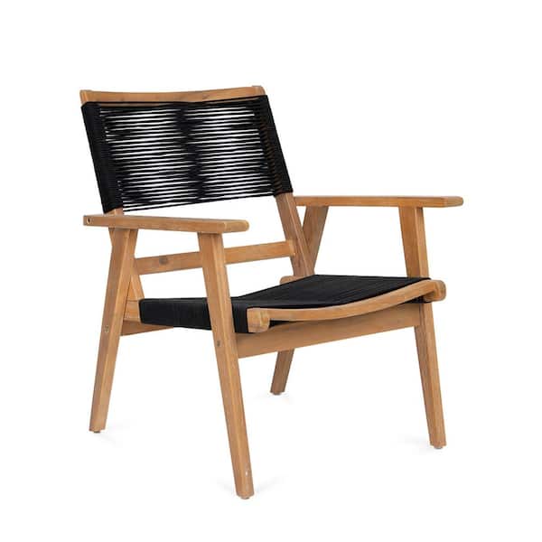 2-Piece Outdoor Natural Wood and Black Rope Lawn Chair
