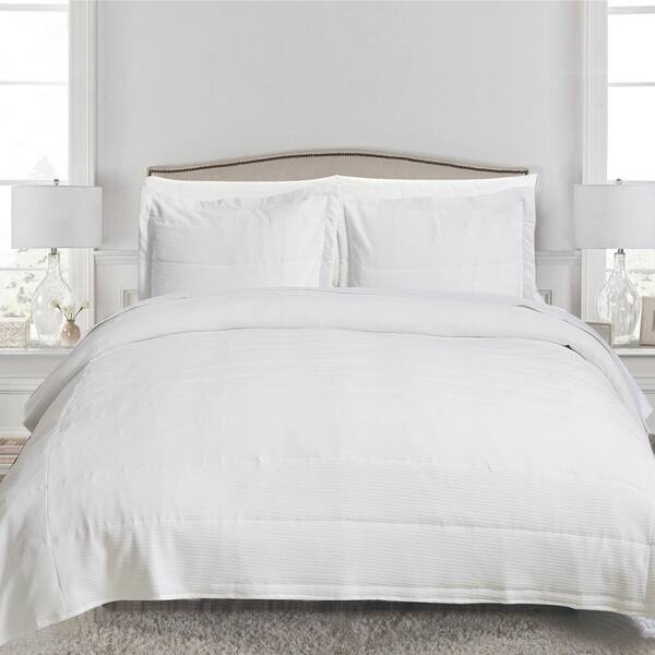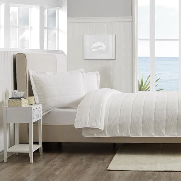 2-Piece White Channel Stitched Solid Twin Microfiber Quilt Set Bedspread