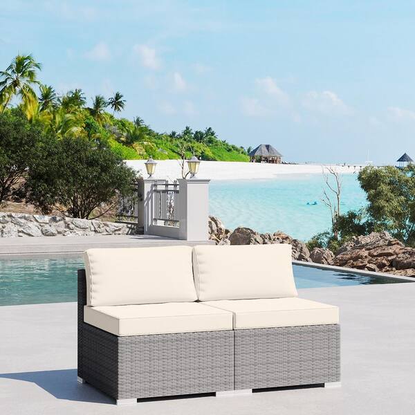 2-Piece Wicker Outdoor Patio Rattan Furniture Sectional Conversation Set with Beige Cushion