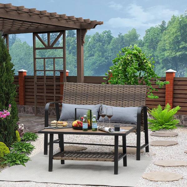 2-Piece Wicker Patio Conversation Set with Gray Pillows
